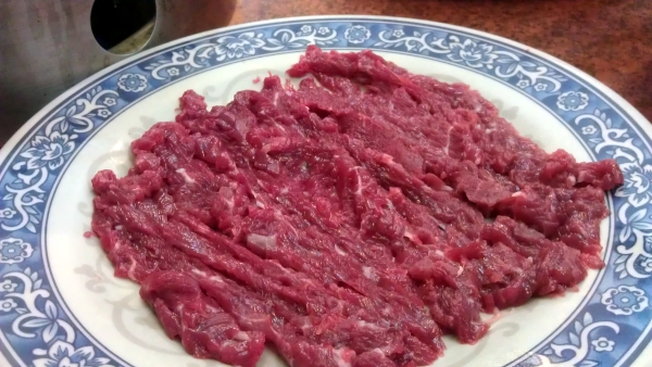 涮到顏色變了,牛肉就可以撈起來,免得煮過頭硬掉