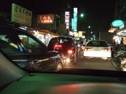 說是這攤子帶動週遭的人氣一點也不為過,看這個照片就知道真相,為了買鹹酥雞回去享用,亂停車造成大塞車,真是有夠誇張。互不相讓就是大家都不要走,要臨停就停一排就好,兩邊都停那是要怎麼過,大家自私的結果就是都不要動了。