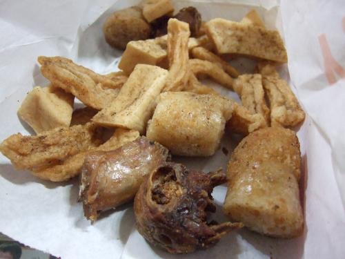 這家我都點 : 雞屁股、雞脖子、天婦羅、雞塊、糯米腸、芋粿ㄎㄧㄠ、豆干、雞心。 當然也有地雷,豆腐類的我就不碰了。(這是個人口味不同)